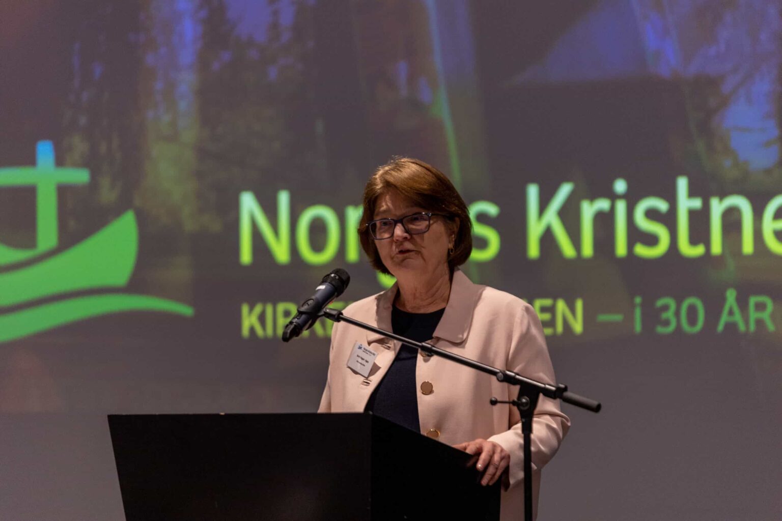 Hun trakk fram mulighetene det fostrer at Norges Kristne Råd favner bredden av kirkesamfunn i Norge og har drøyt 70 % av befolkningen som medlemmer.