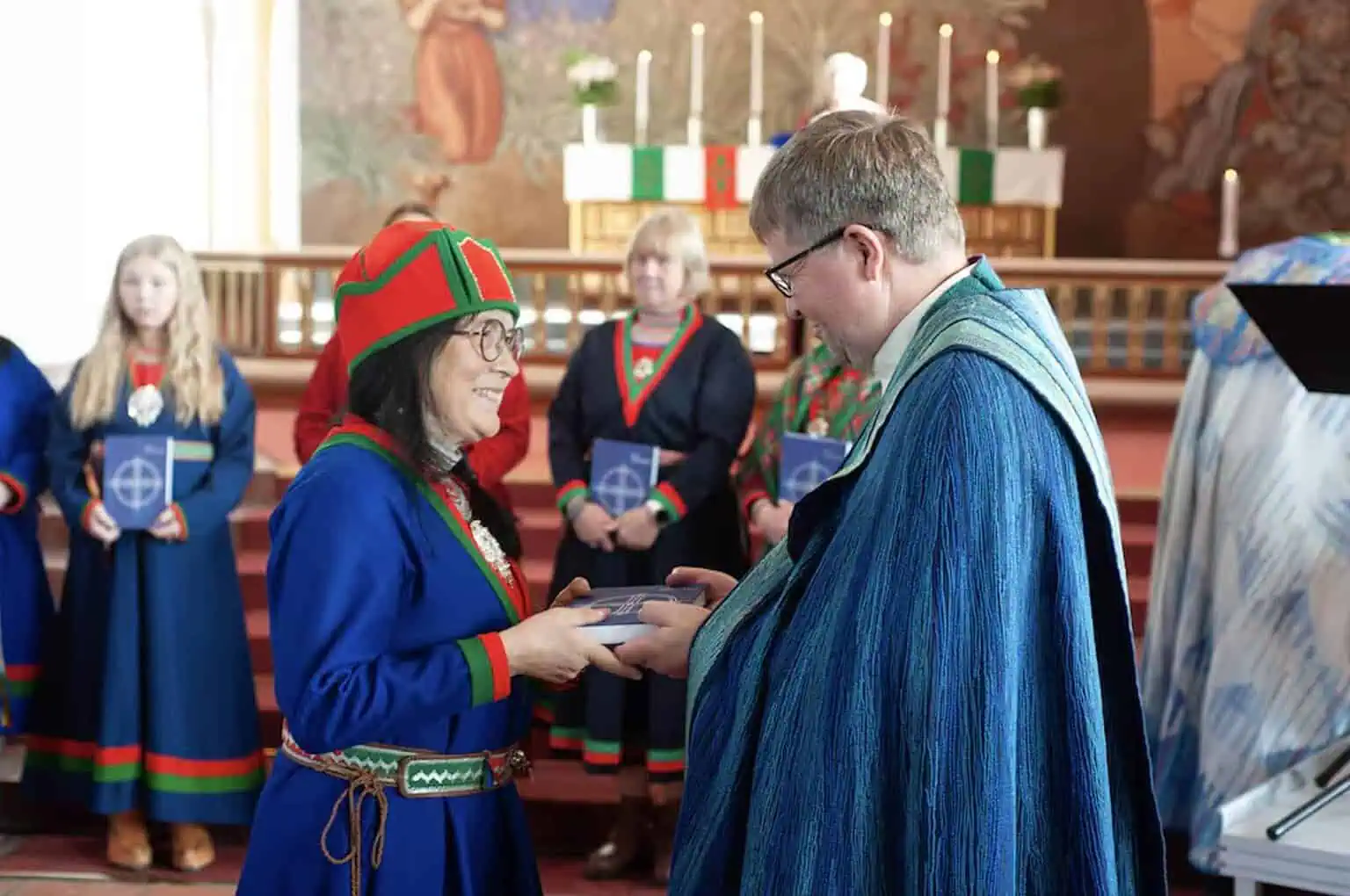 Det blei en stor dag da Det nye testamentet på sørsamisk endelig var ferdig og ble overlevert under en høytidelig høymesse i en fullsatt Stora kyrkan i Staare/Østersund. Nærmere 300 personer hadde samlet seg for å delta i høymessen, mange av dem samer fra området.