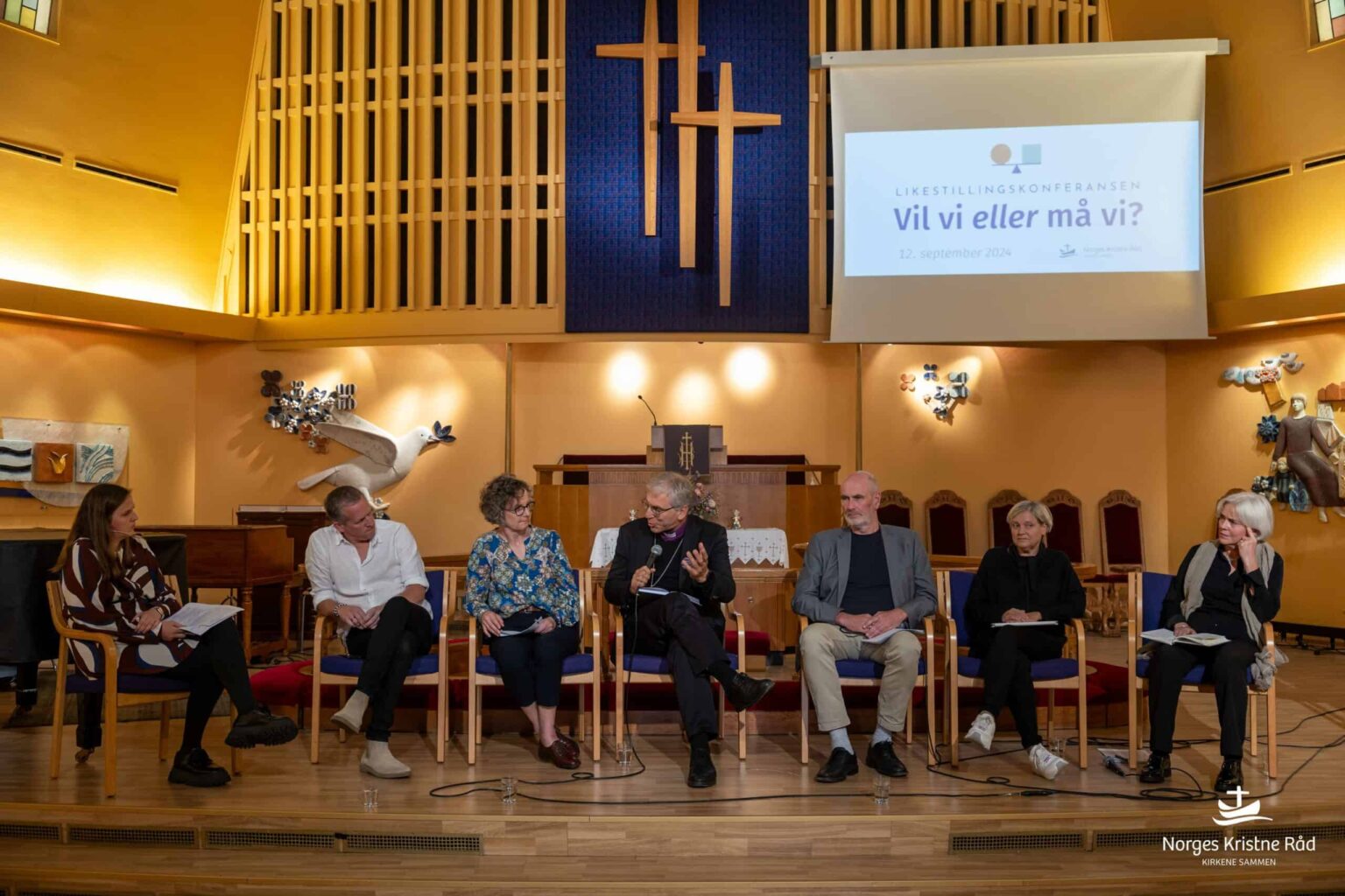 Norges Kristne Råd arrangerte likestillingskonferansen den 12. september 2024 med temaet «Likestilling – Vil vi eller må vi?». Konferansen som ble holdt i Metodistkirkens lokaler i Oslo sentrum, utforsket skjæringspunktet mellom teologi, trosfrihet, statlige krav og behovet for endring i kirkene. Målet var å belyse utfordringer og muligheter knyttet til kjønnsbalanse og trosfrihet, og innledere fra ulike bakgrunner delte innsikter om hvordan kirkesamfunn kan tilrettelegge for økt likestilling.