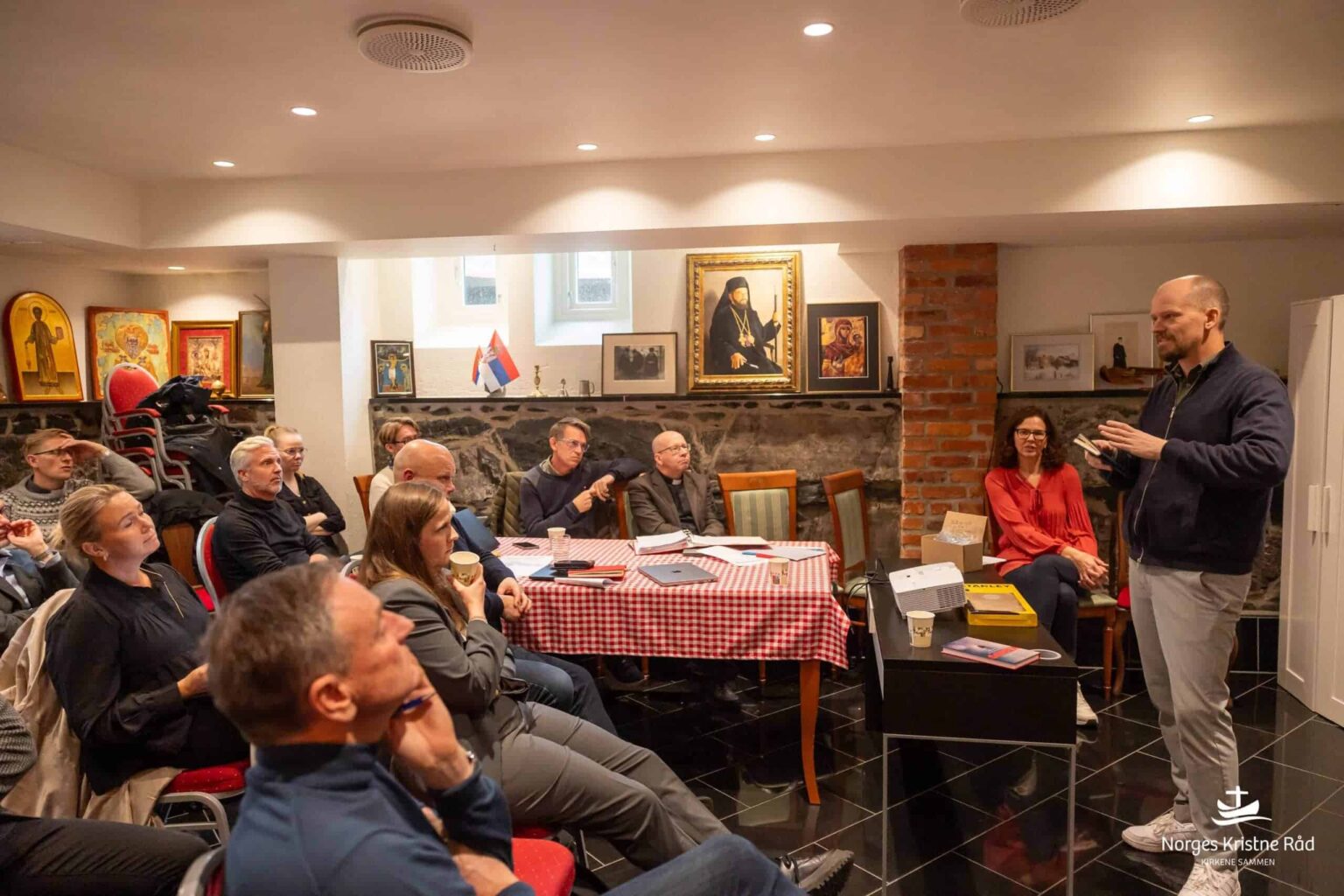 Styret i Norges Kristne Råd rullerer på å ha styremøtene sine i en av medlemskirkenes kirkebygg. I går var Den serbisk ortodokse kirke vertskap for styremøtet. Temaet for internseminaret var «Barn og ungdom, kropp, porno og digitale flater – og Kirkens svar», og målsettingen var å rette søkelyset mot hvordan kirken kan møte utfordringene som mange barn og unge i dag står overfor i en digitalisert verden, da spesielt pornografi. Samtidig søkte seminaret å gi ledere konkrete verktøy for å samtale om og tilnærme seg temaer som kropp, seksualitet og mediebruk. Prosjektleder for Global uke mot moderne slaveri, Elin Finnseth Sæverås, var den som ledet seminaret.