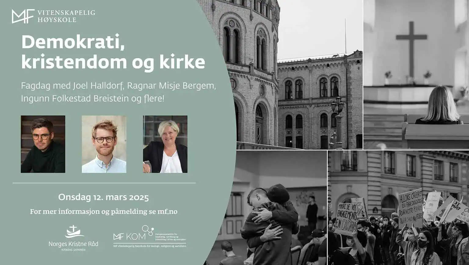 Fagdagen arrangeres av MF KOM, Norges Kristne Råd og forskningsgruppen i religion og politikk ved MF og vil samle forskere, kirkeledere og engasjerte samfunnsaktører til en dag med innsikt og refleksjon. Temaet for dagen er hvordan kristendommen har preget demokratisk tenkning, både historisk og i vår tid. Her kan du melde deg på.